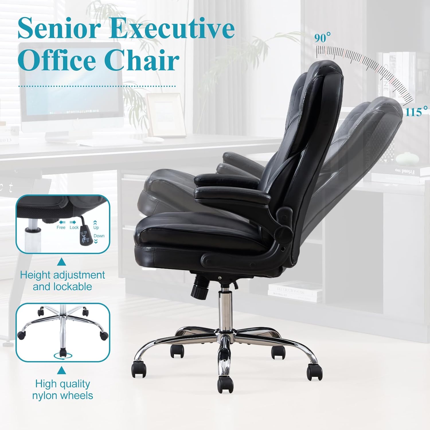 Excellent quality: This executive chair is equipped with sturdy and durable silent nylon wheels, which can effectively prevent damage to the floor. SGS certified three-level gas rods and reinforced explosion-proof base enable this leather office chair to support 500 pounds, and the frame uses FSC certified wood to ensure safety, stability and longevity