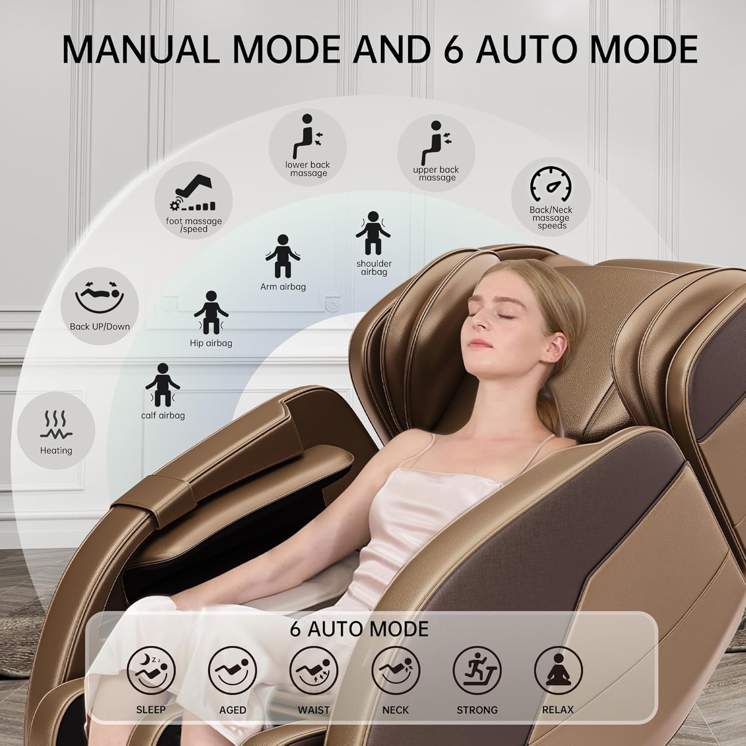 Full Body Airbags: In manual mode, the airbags can massage the shoulders, arm, buttocks, calf and control the airbag pressure. In Auto mode, the overall airbag pressure can be adjusted, and the intensity can be adjusted in 3 levels